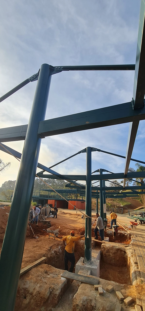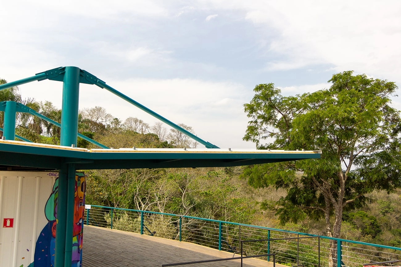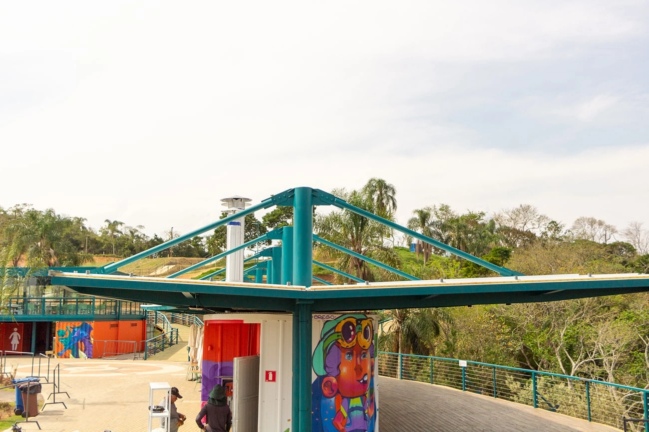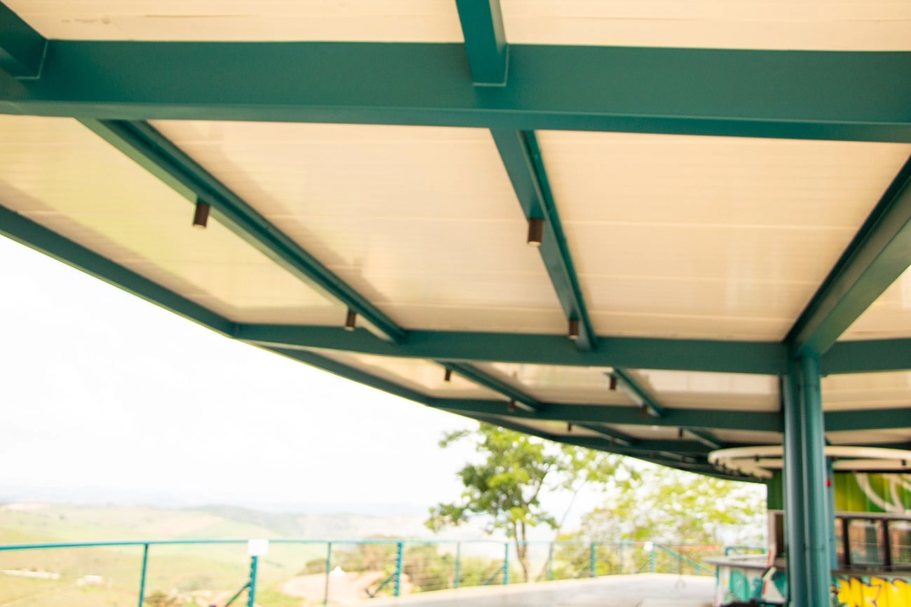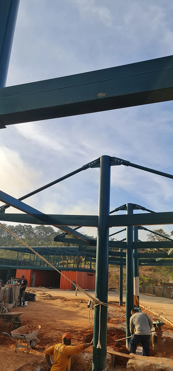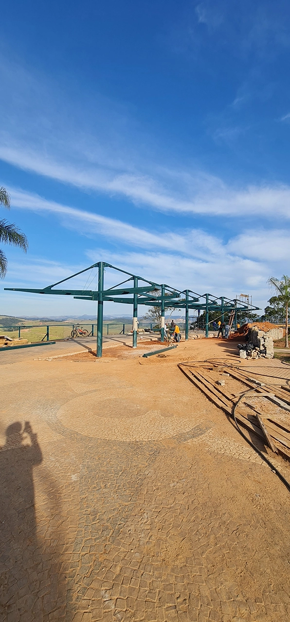 Por ser um local alto e com grande influencia de vento o maior desafio foi relacionado a estabilização da estrutura que é composta por pilares em linha, tendo balanço para os 02 lados.