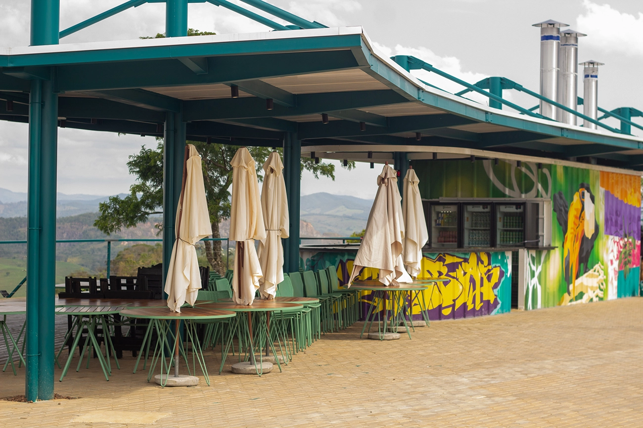 Fazer uma área de cobertura e bar para abrigar os ocupantes do parque.